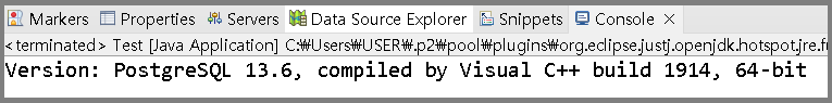 콘솔창에 PostgreSQL 버전이 출력되면 성공이다. (PostgreSQL 13.6)